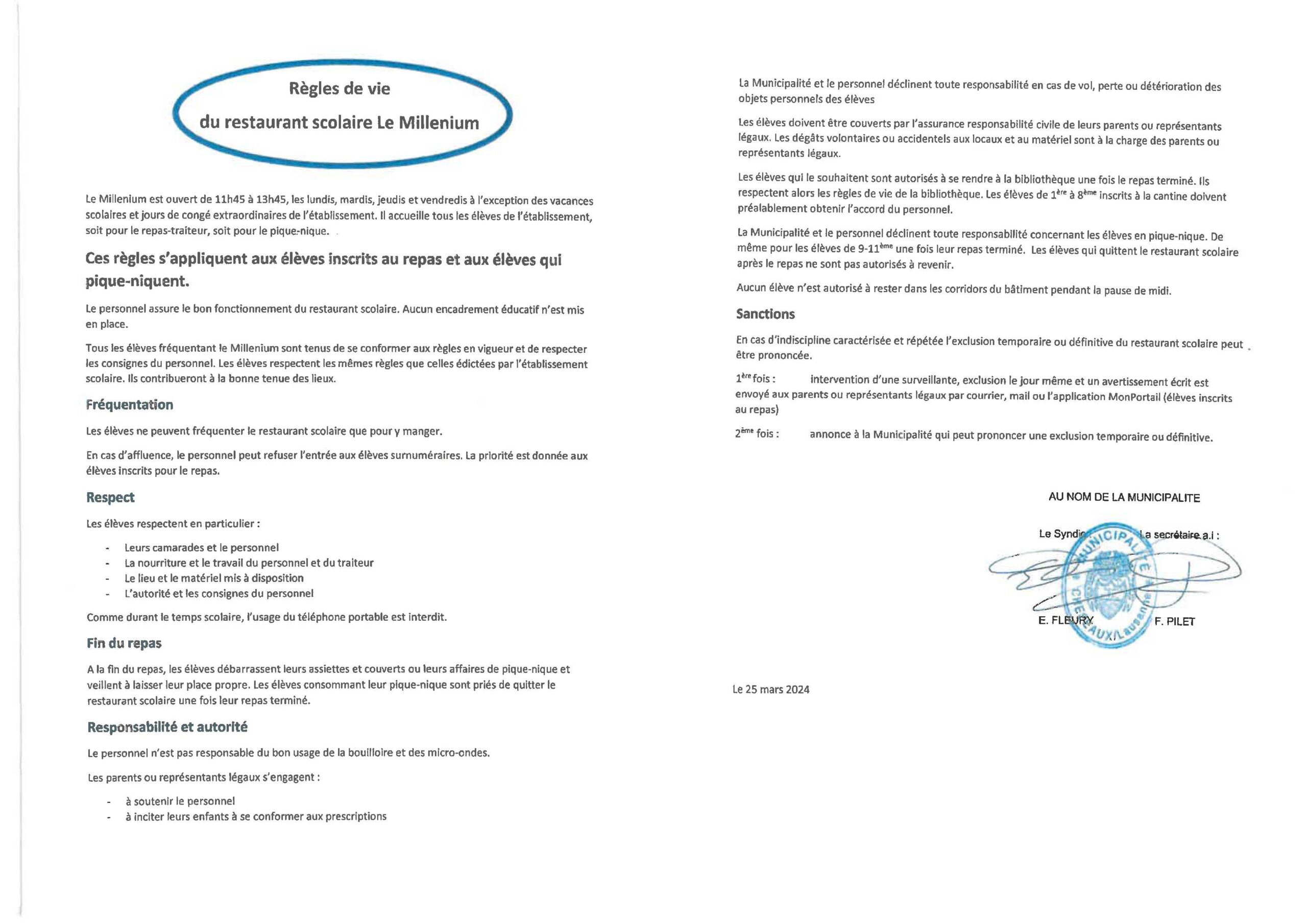 Les élèves ne doivent plus rester dans les bâtiments de DLV 1 à 4 et les salles d’EPH à midi pour manger.