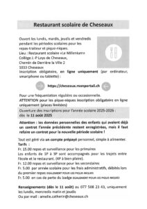 Les élèves qui restent à DLV pour manger à midi (repas à chauffer ou pique-nique) se rendent également au réfectoire scolaire au LDC, l’inscription au préalable est obligatoire. Les heures d’ouverture sont de 11h45 à 13h45.